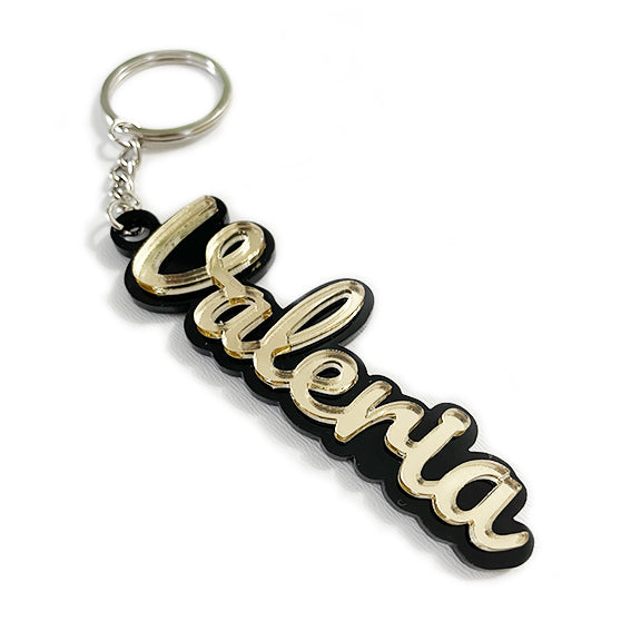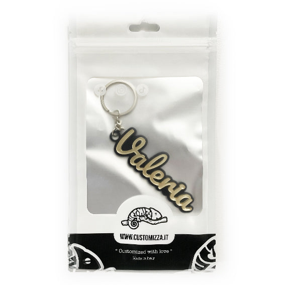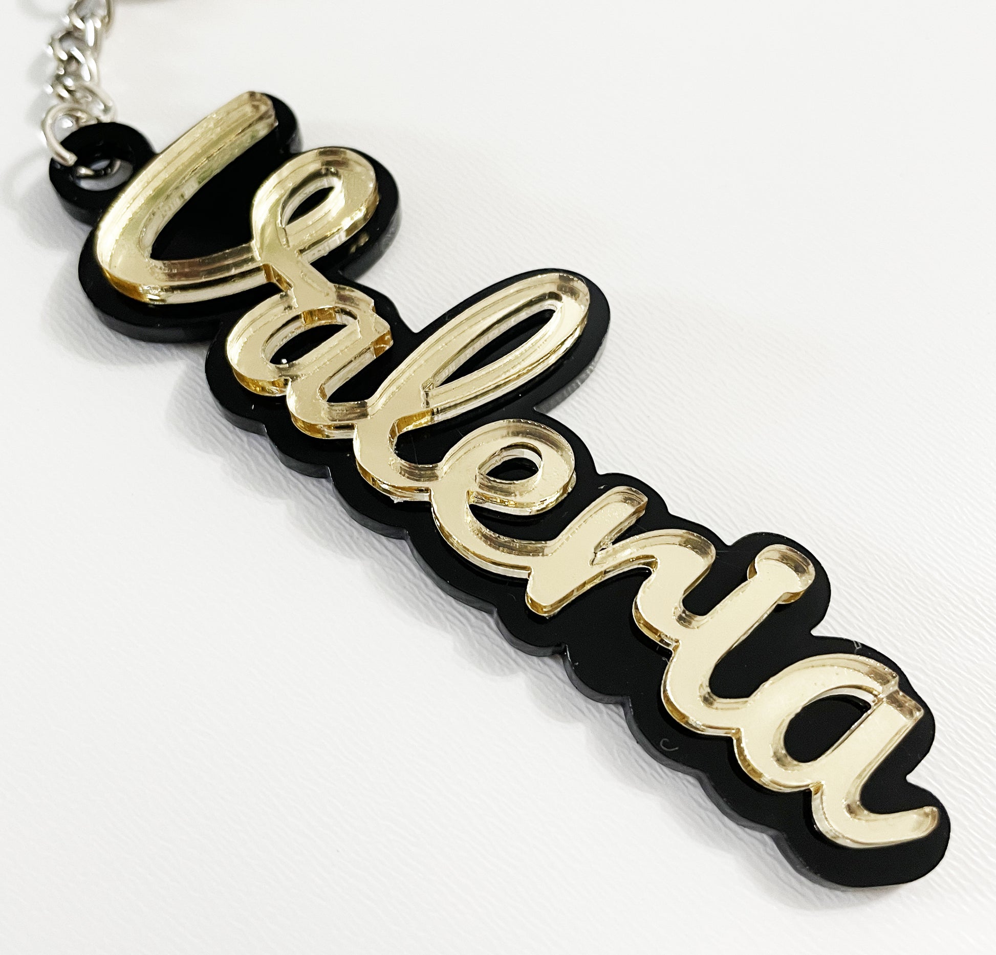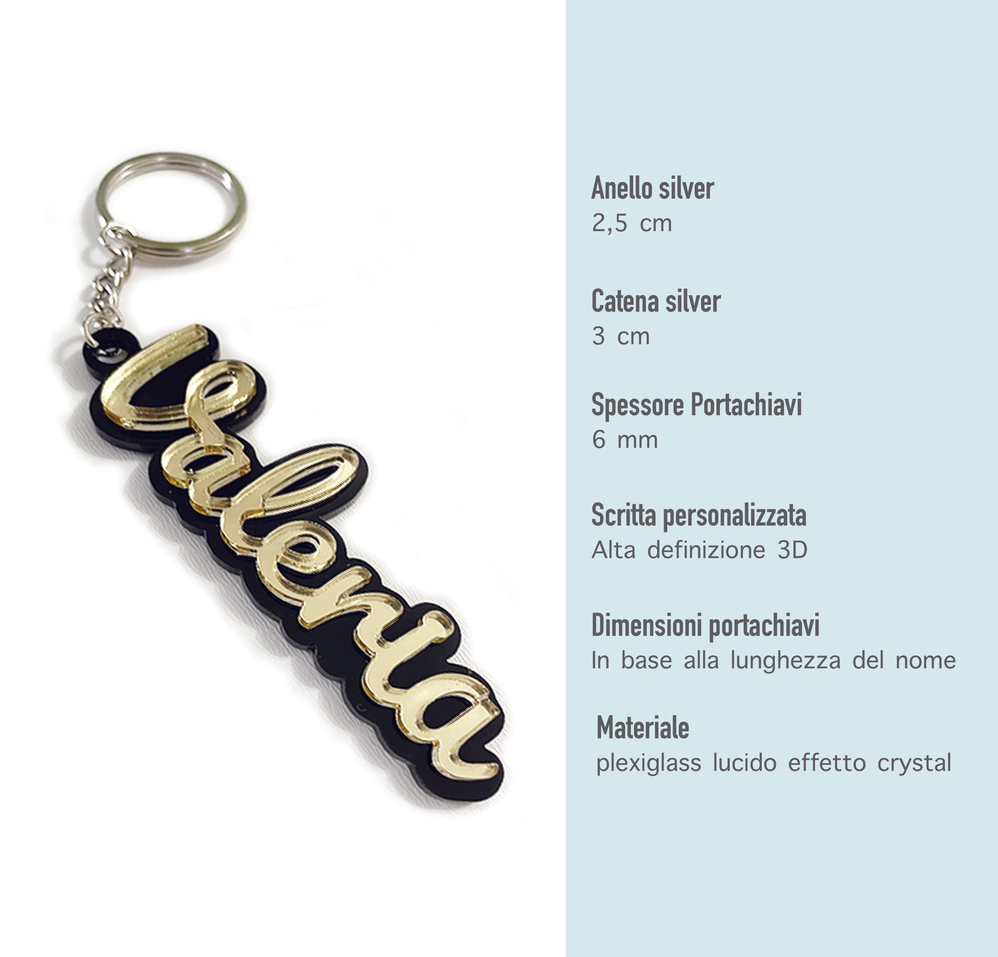 Copia del Portachiavi in plexiglass personalizzato con nome dedica a rilievo 3d corsivo idea regalo casa auto moto scooter Dorato nero