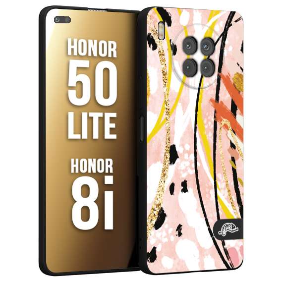CUSTOMIZZA - Custodia cover nera morbida in tpu compatibile per Honor 8i - Honor 50 LITE fiori astratti donna zebrato leopardato fantasia dorata gialla rosa colorata