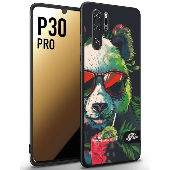 CUSTOMIZZA - Custodia cover nera morbida in tpu compatibile per Huawei P30 PRO estate disegnata cocktails animali simpatici panda mojito