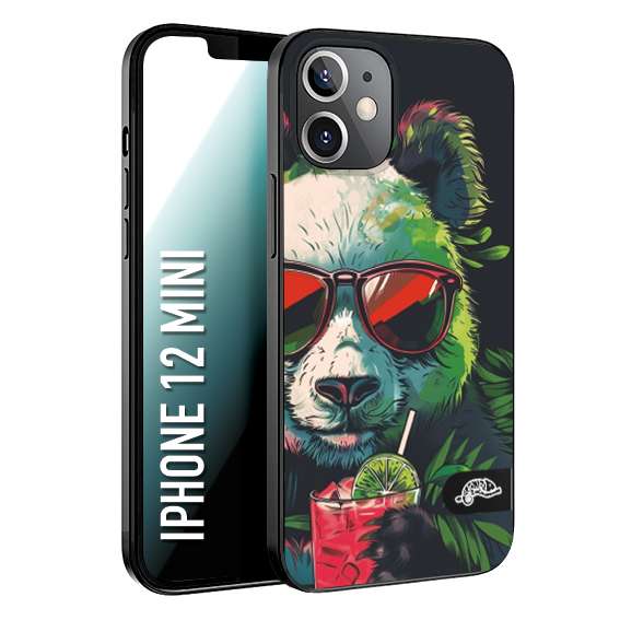 CUSTOMIZZA - Custodia cover nera morbida in tpu compatibile per iPhone 12 MINI estate disegnata cocktails animali simpatici panda mojito