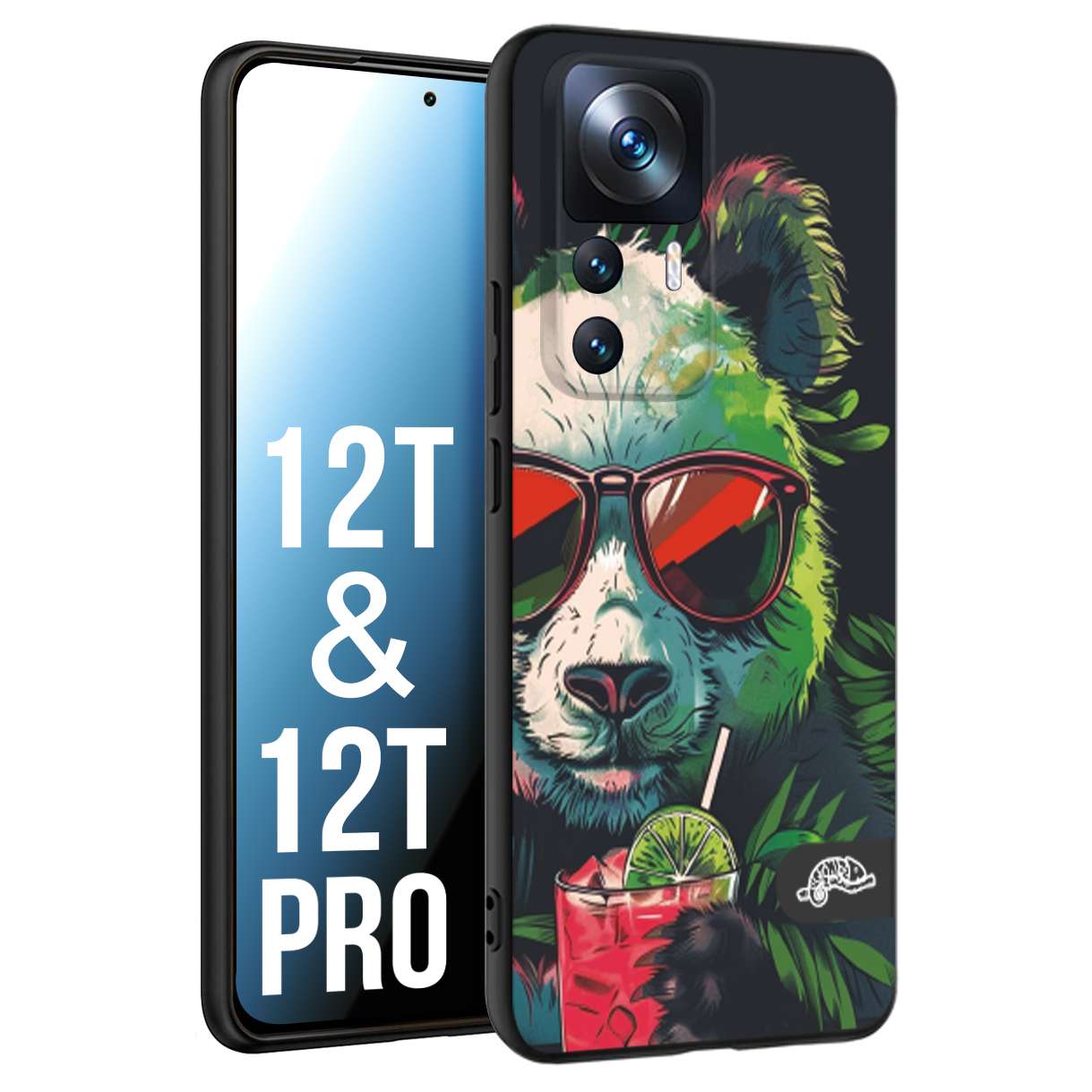 CUSTOMIZZA - Custodia cover nera morbida in tpu compatibile per Xiaomi 12T - 12T PRO estate disegnata cocktails animali simpatici panda mojito
