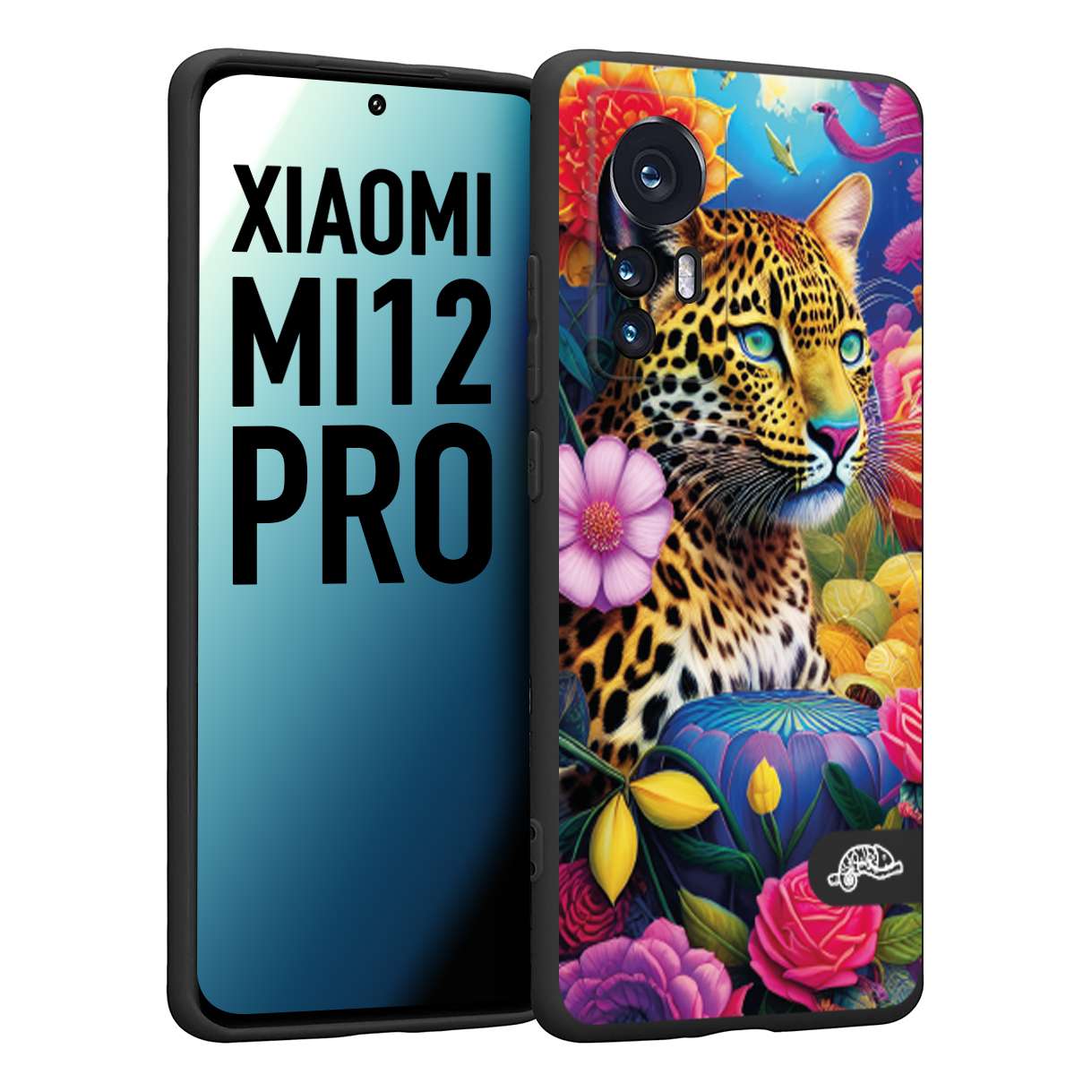 CUSTOMIZZA - Custodia cover nera morbida in tpu compatibile per Xiaomi 12 PRO fiori astratti donna flower fantasia leopardo ghepardo animali colorati