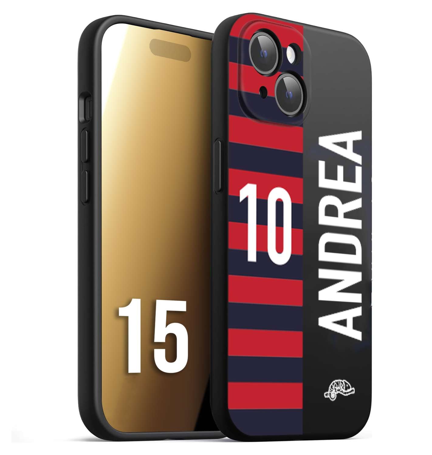 CUSTOMIZZA - Custodia cover nera morbida in tpu compatibile per iPhone 15 personalizzata calcio football nome e numero calciatori rossoblu