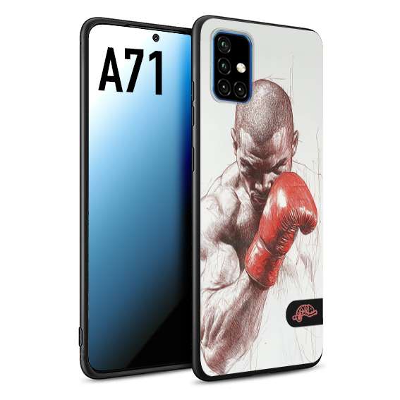 CUSTOMIZZA - Custodia cover nera morbida in tpu compatibile per Samsung A71 pugilato pugili disegno tattoo guantoni box sport primo piano
