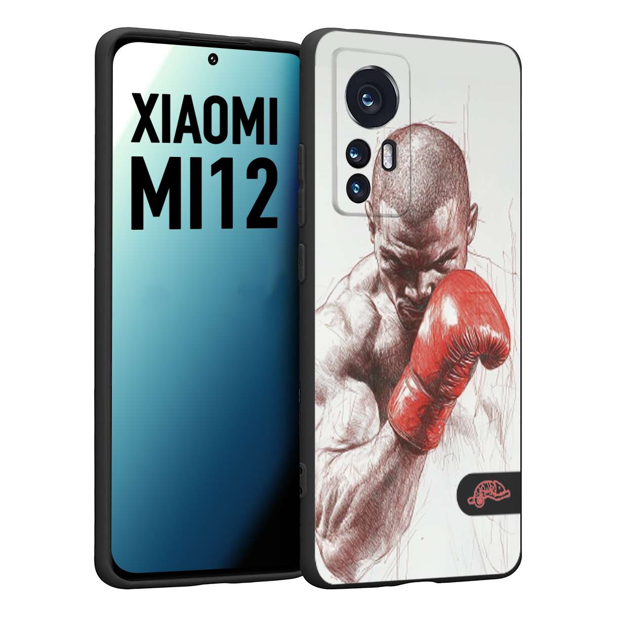 CUSTOMIZZA - Custodia cover nera morbida in tpu compatibile per Xiaomi 12 5G pugilato pugili disegno tattoo guantoni box sport primo piano