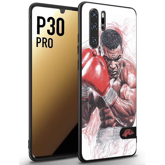 CUSTOMIZZA - Custodia cover nera morbida in tpu compatibile per Huawei P30 PRO pugilato pugili disegno tattoo guantoni boxer pesi massimi iron mike