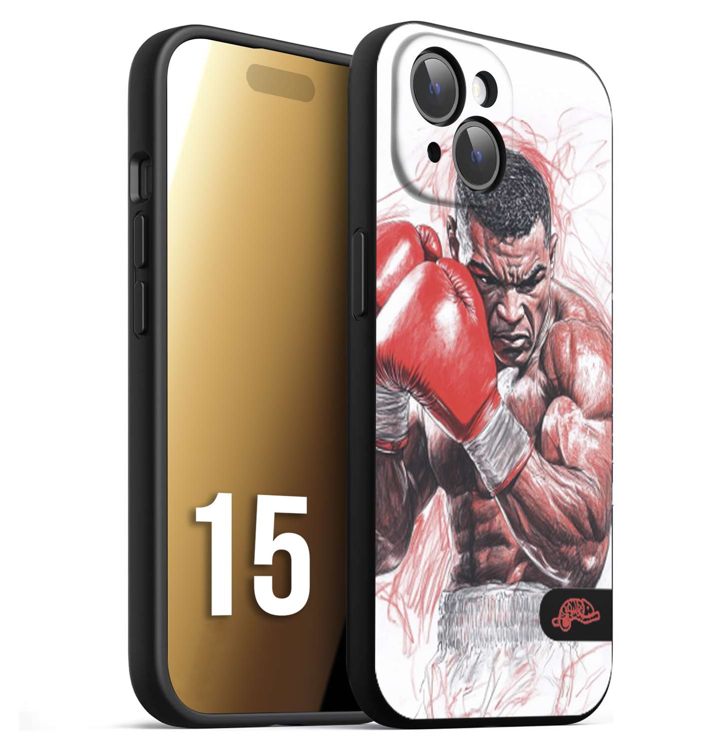 CUSTOMIZZA - Custodia cover nera morbida in tpu compatibile per iPhone 15 pugilato pugili disegno tattoo guantoni boxer pesi massimi iron mike