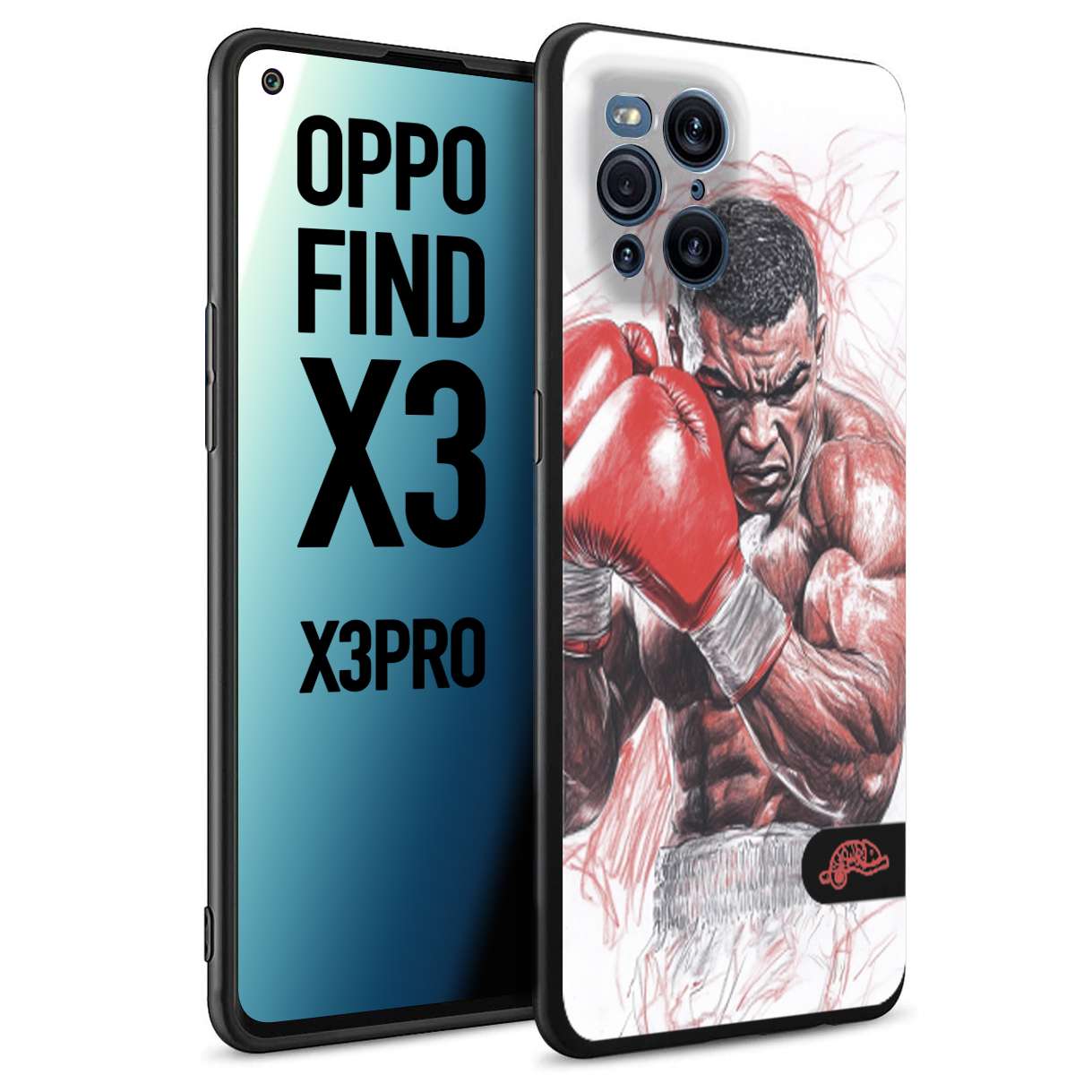 CUSTOMIZZA - Custodia cover nera morbida in tpu compatibile per Oppo Find X3 - Find X3 Pro 5G pugilato pugili disegno tattoo guantoni boxer pesi massimi iron mike