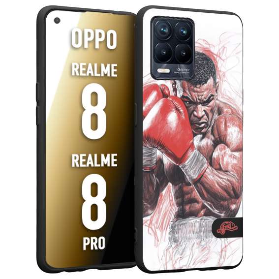 CUSTOMIZZA - Custodia cover nera morbida in tpu compatibile per Realme 8 - 8 PRO pugilato pugili disegno tattoo guantoni boxer pesi massimi iron mike
