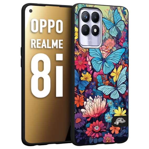 CUSTOMIZZA - Custodia cover nera morbida in tpu compatibile per Oppo Realme C21 4G farfalle butterfly moderno donna disegnate gialla blu rosa