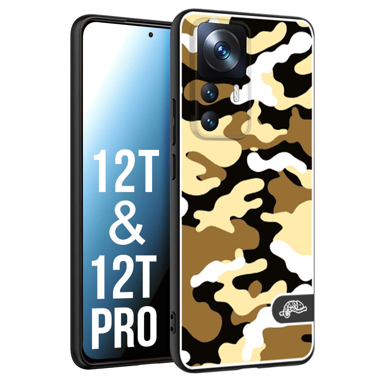 CUSTOMIZZA - Custodia cover nera morbida in tpu compatibile per Xiaomi 12T - 12T PRO camouflage mimetico militare giallo desert brown