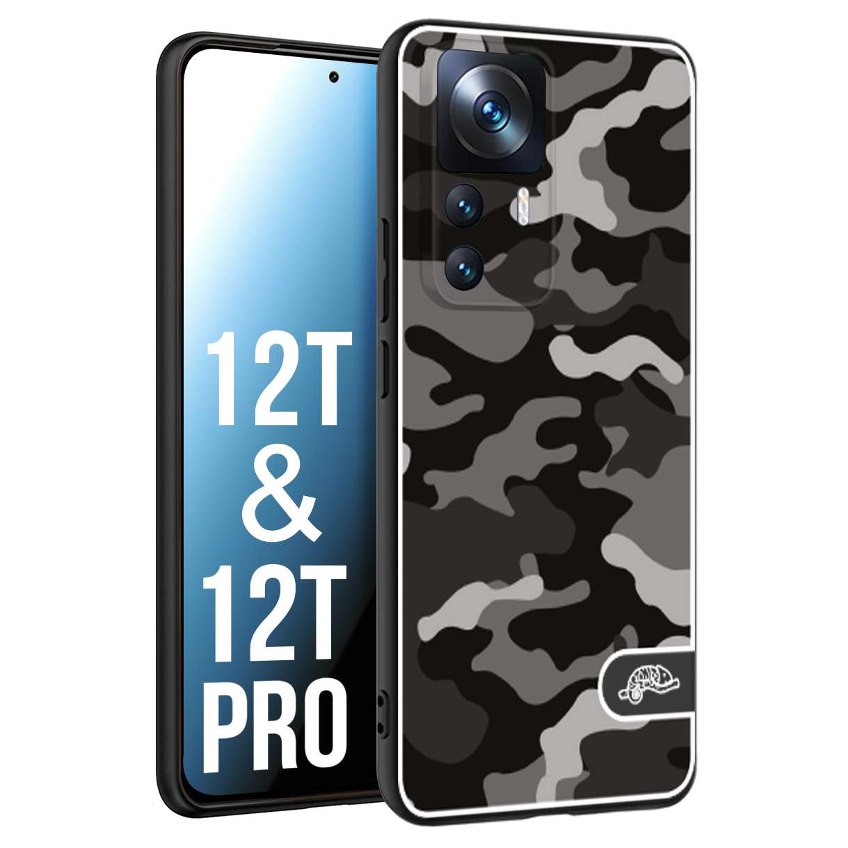 CUSTOMIZZA - Custodia cover nera morbida in tpu compatibile per Xiaomi 12T - 12T PRO camouflage mimetico militare nero black grigio
