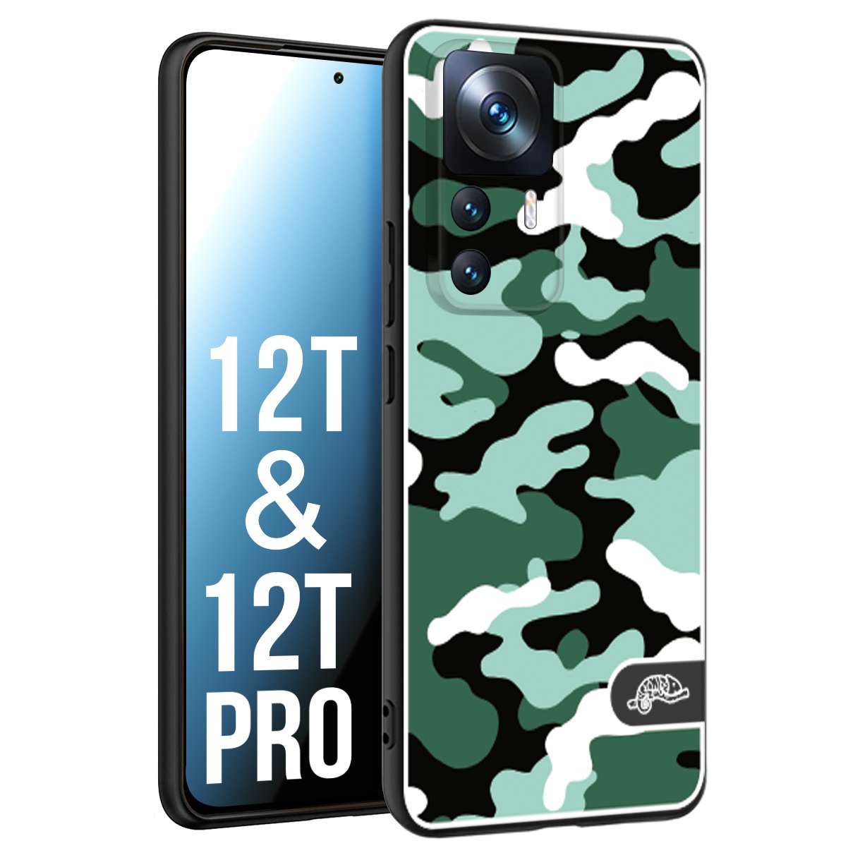 CUSTOMIZZA - Custodia cover nera morbida in tpu compatibile per Xiaomi 12T - 12T PRO camouflage mimetico militare verde green