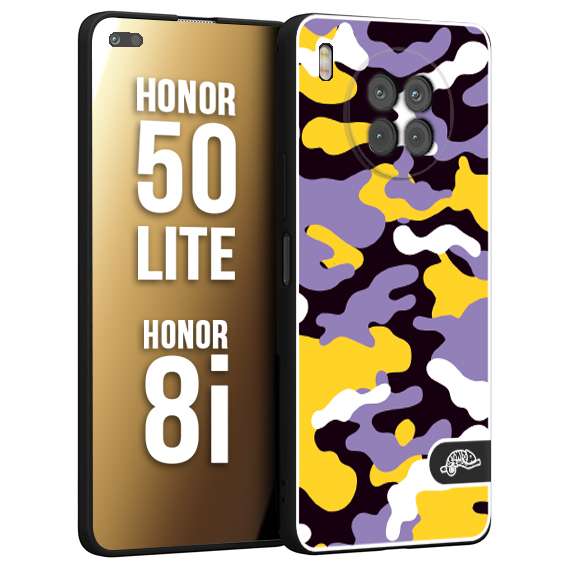 CUSTOMIZZA - Custodia cover nera morbida in tpu compatibile per Honor 8i - Honor 50 LITE camouflage mimetico militare viola lilla giallo