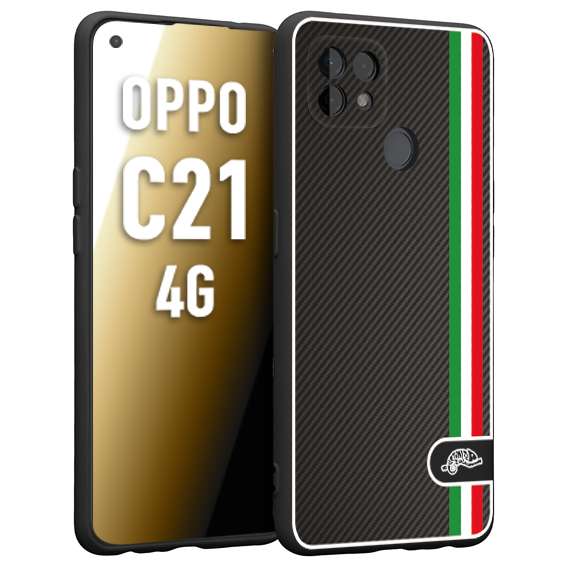 CUSTOMIZZA - Custodia cover nera morbida in tpu compatibile per Oppo Realme C21 4G effetto fibra di carbonio bandiera Italia made in Italy