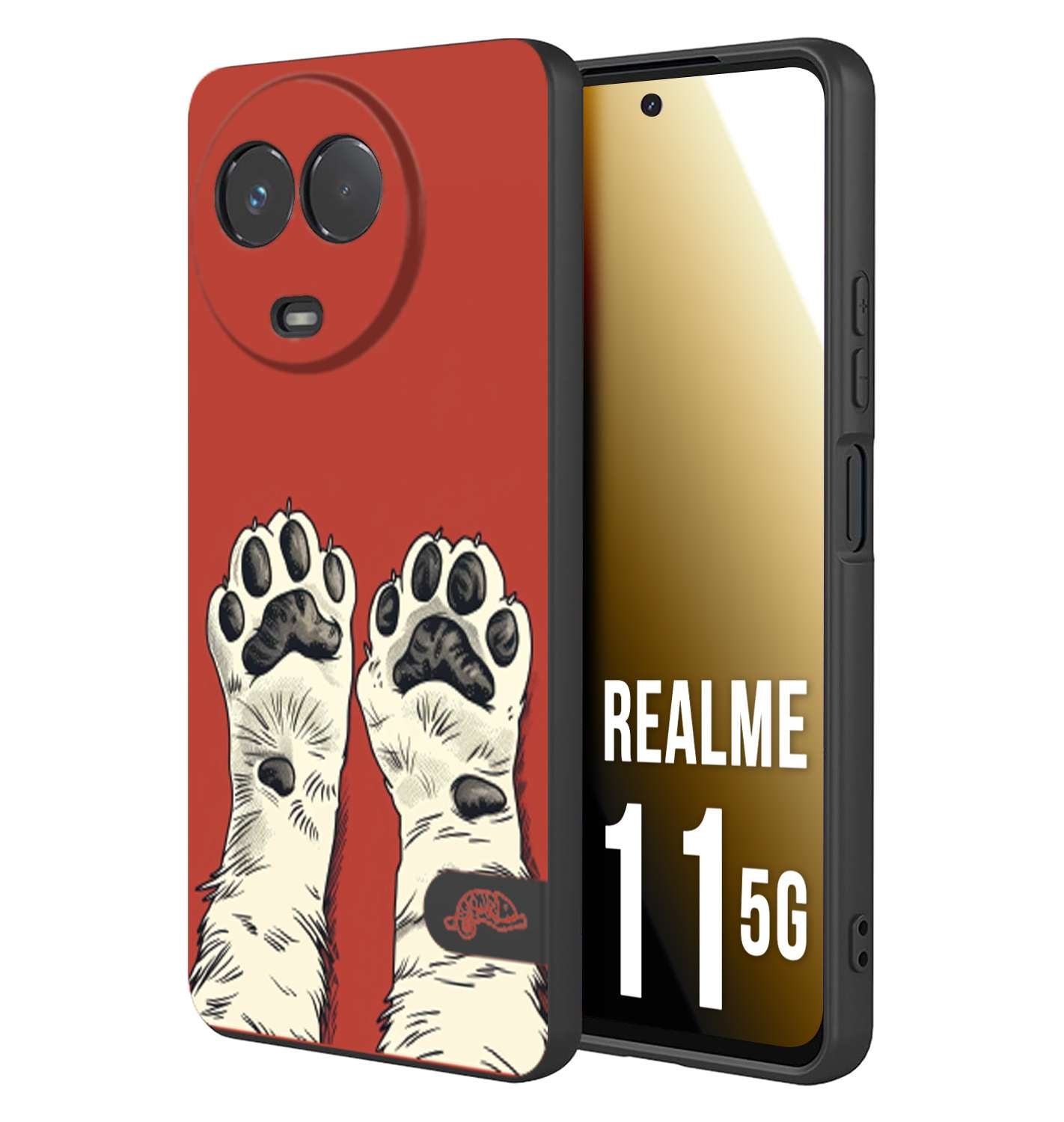 CUSTOMIZZA - Custodia cover nera morbida in tpu compatibile per Realme 11 5G zampe di gatto cat paws rossa red disegnata fumetto cartoon