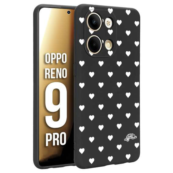 CUSTOMIZZA - Custodia cover nera morbida in tpu compatibile per Oppo Reno 9 PRO cuori pois bianchi donna pin up vintage