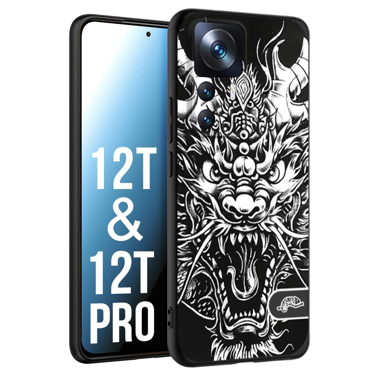 CUSTOMIZZA - Custodia cover nera morbida in tpu compatibile per Xiaomi 12T - 12T PRO drago black and white bianco a rilievo disegnato tattoo tatuaggio