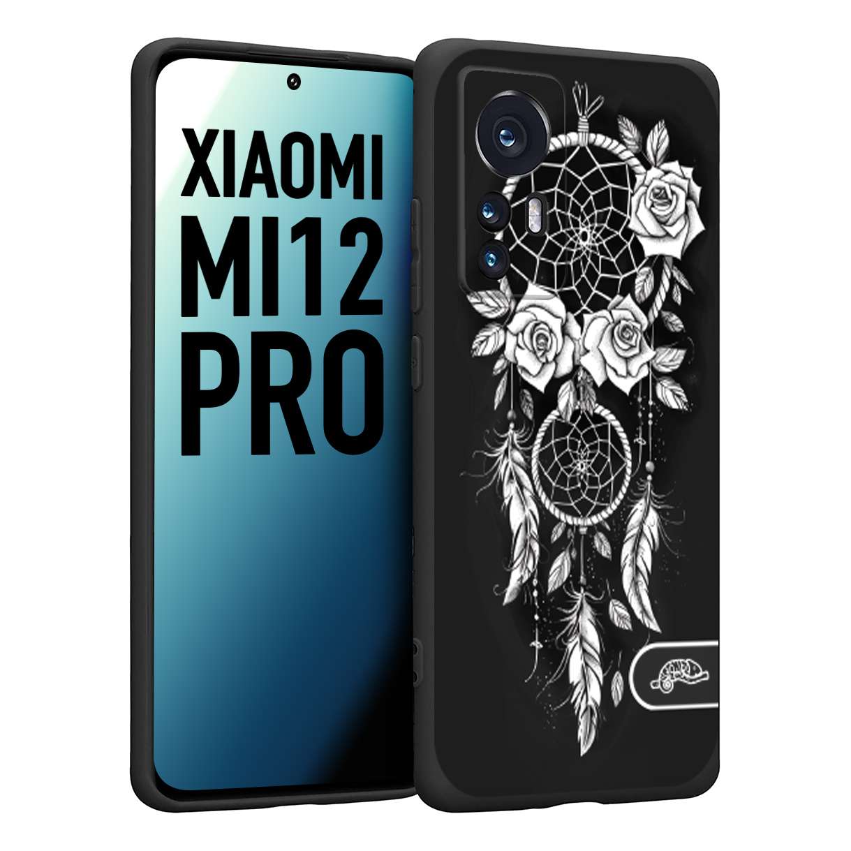 CUSTOMIZZA - Custodia cover nera morbida in tpu compatibile per Xiaomi 12 PRO acchiappasogni dreamcatcher black and white bianco a rilievo disegnato tattoo tatuaggio