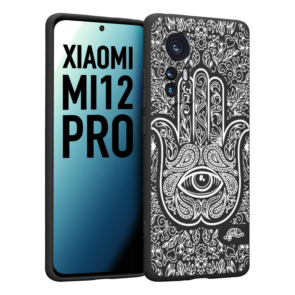 CUSTOMIZZA - Custodia cover nera morbida in tpu compatibile per Xiaomi 12 PRO mano di fatima effetto rilievo mandala donna