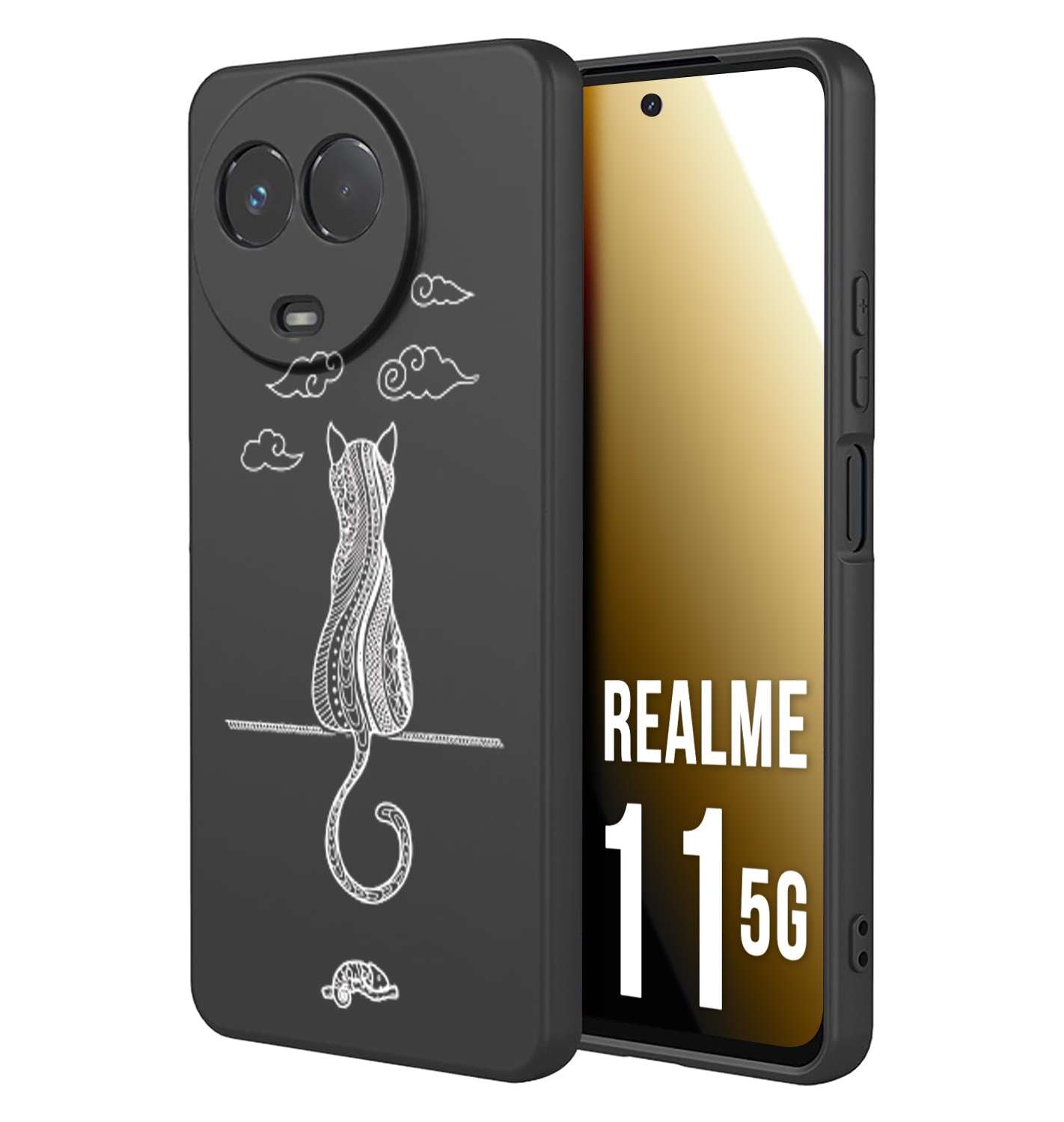 CUSTOMIZZA - Custodia cover nera morbida in tpu compatibile per Oppo Realme 11 5G gatto mandala stilizzato gattino a rilievo soft touch donna bianca