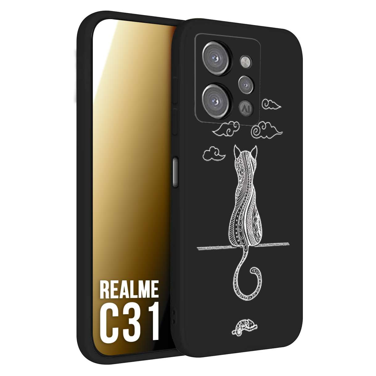 CUSTOMIZZA - Custodia cover nera morbida in tpu compatibile per Oppo Realme C31 gatto mandala stilizzato gattino a rilievo soft touch donna bianca