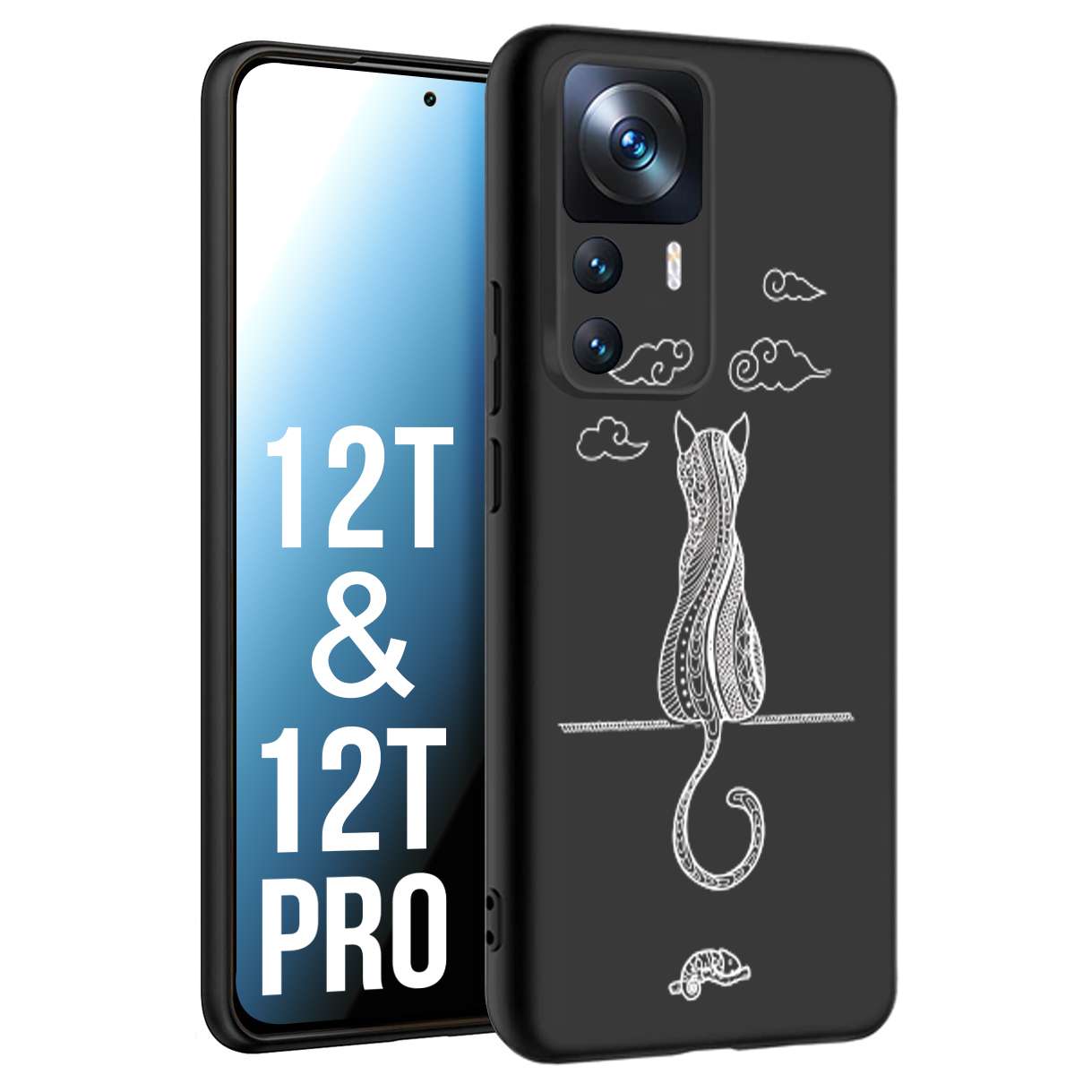 CUSTOMIZZA - Custodia cover nera morbida in tpu compatibile per Xiaomi 12T - 12T PRO gatto mandala stilizzato gattino a rilievo soft touch donna bianca