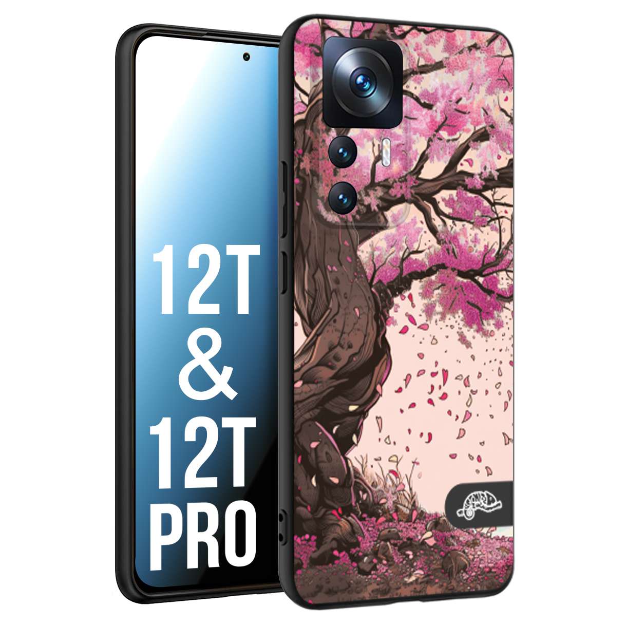 CUSTOMIZZA - Custodia cover nera morbida in tpu compatibile per Xiaomi 12T - 12T PRO giapponese colori morbidi fiori di ciliegio rosa disegnata