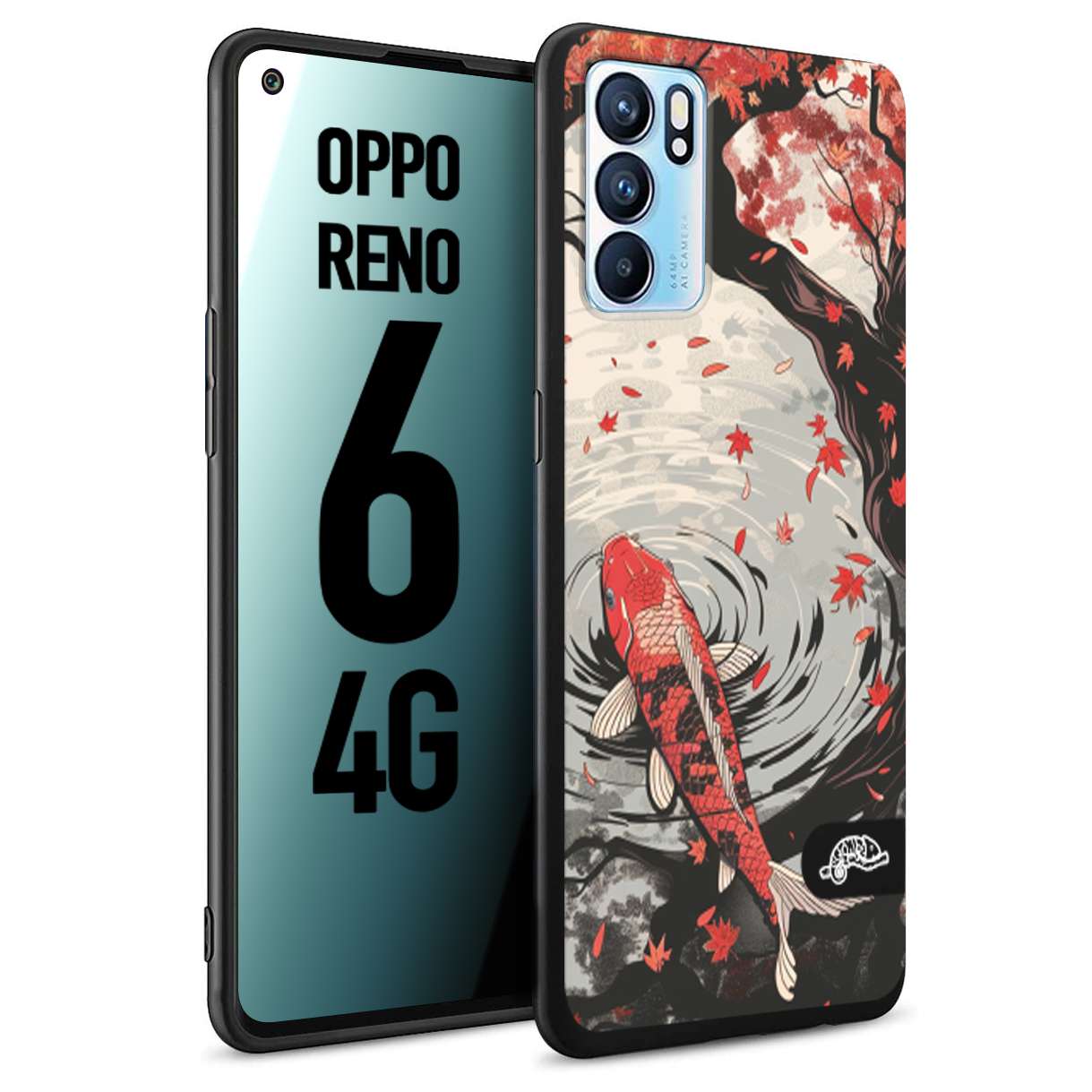 CUSTOMIZZA - Custodia cover nera morbida in tpu compatibile per Oppo Reno 6 4G giapponese lago carpa koi rossa con foglie d'acero rosso disegnata tattoo