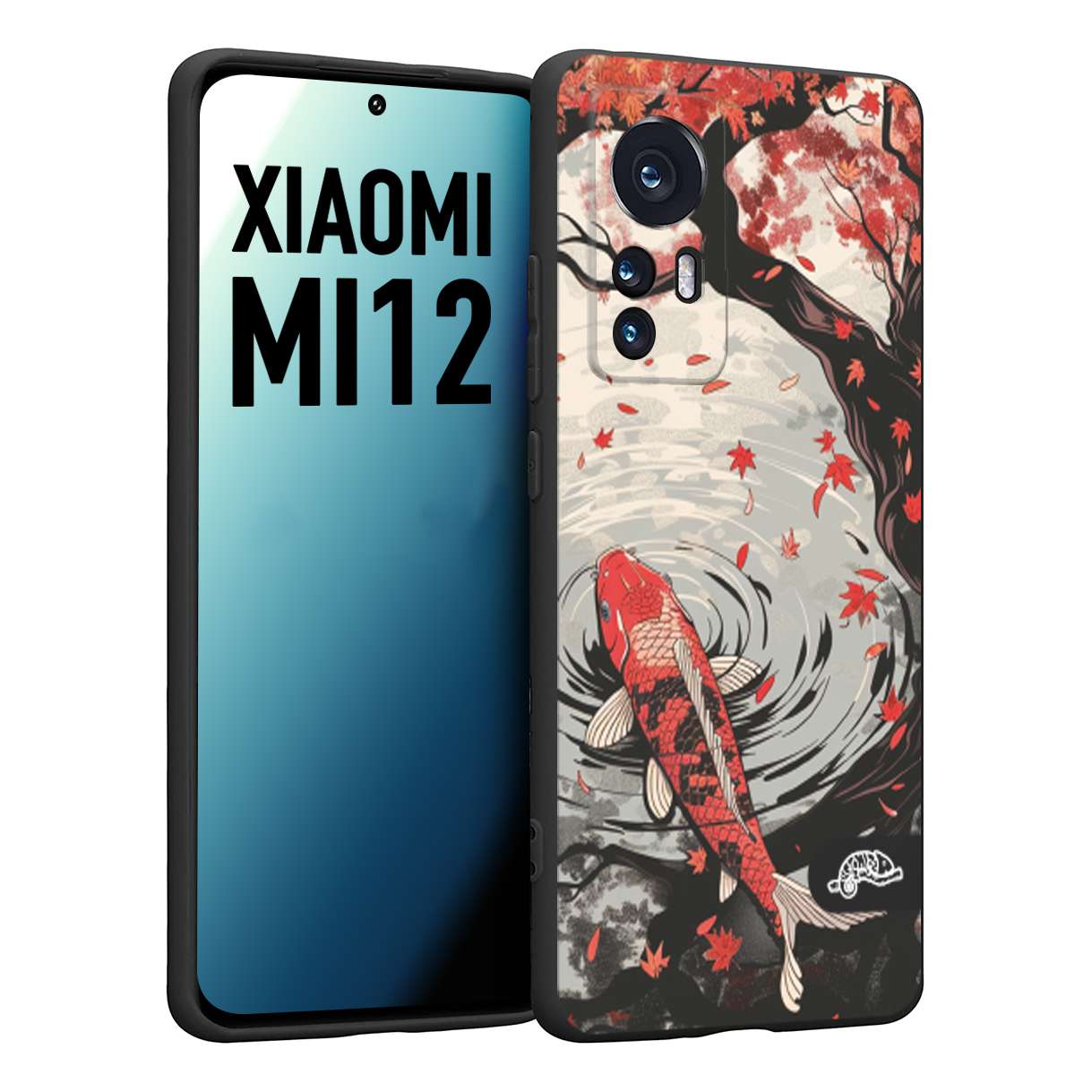 CUSTOMIZZA - Custodia cover nera morbida in tpu compatibile per Xiaomi 12 5G giapponese lago carpa koi rossa con foglie d'acero rosso disegnata tattoo