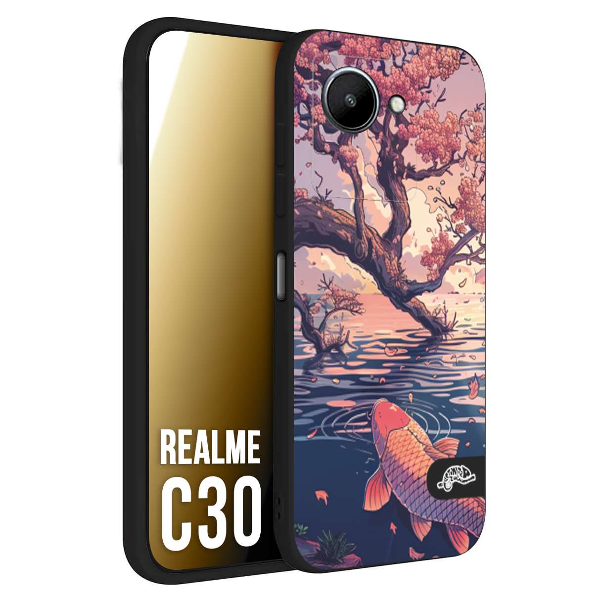 CUSTOMIZZA - Custodia cover nera morbida in tpu compatibile per Oppo Realme C30 giapponese lago carpa koi rosa con foglie d'acero disegnata tattoo