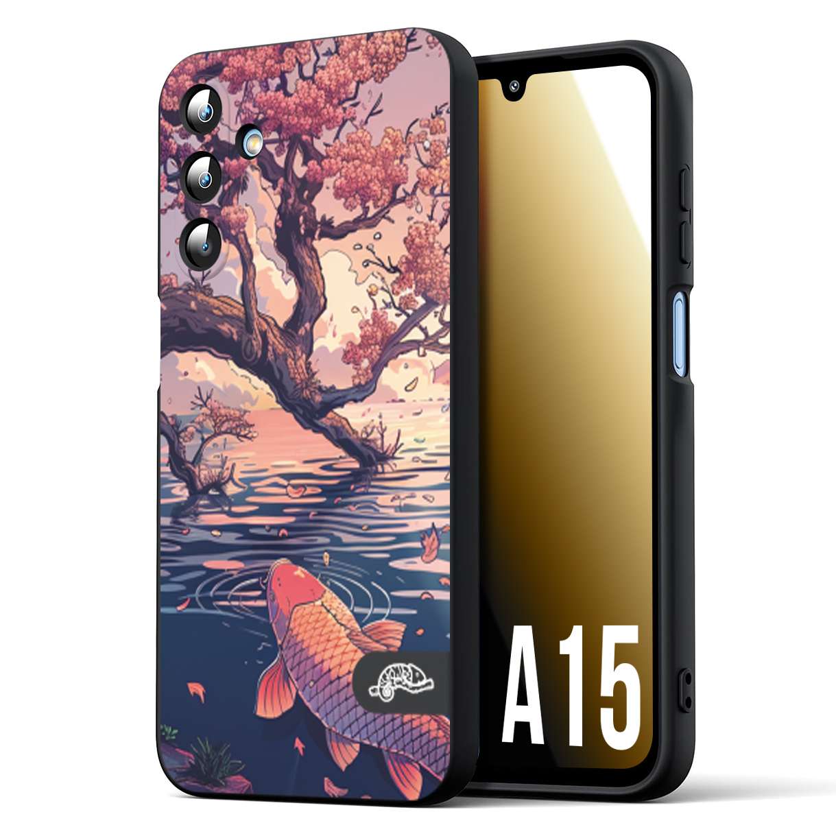 CUSTOMIZZA - Custodia cover nera morbida in tpu compatibile per Samsung A15 5G giapponese lago carpa koi rosa con foglie d'acero disegnata tattoo