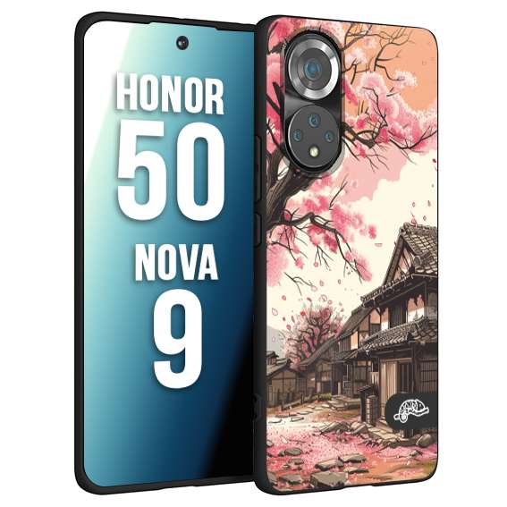 CUSTOMIZZA - Custodia cover nera morbida in tpu compatibile per Huawei Nova 9 - Honor 50 casa giapponese rosa ciliegio in fiore disegnata tattoo