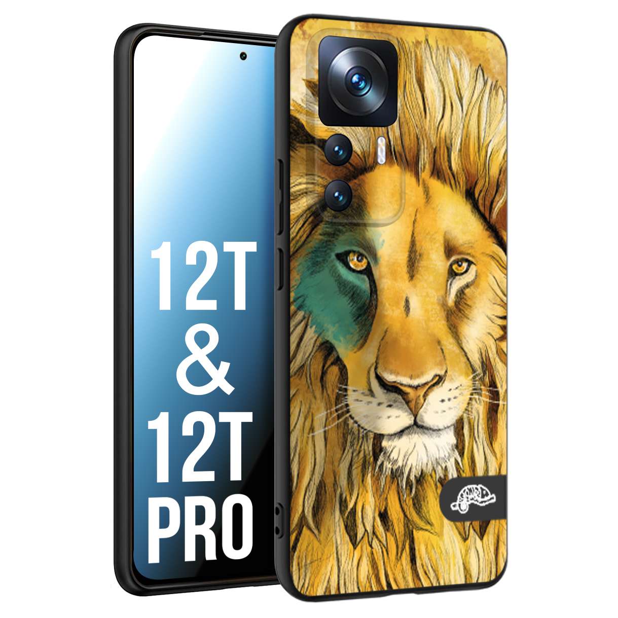 CUSTOMIZZA - Custodia cover nera morbida in tpu compatibile per Xiaomi 12T - 12T PRO leone lion disegnato a mano giallo blu a rilievo artistico brown