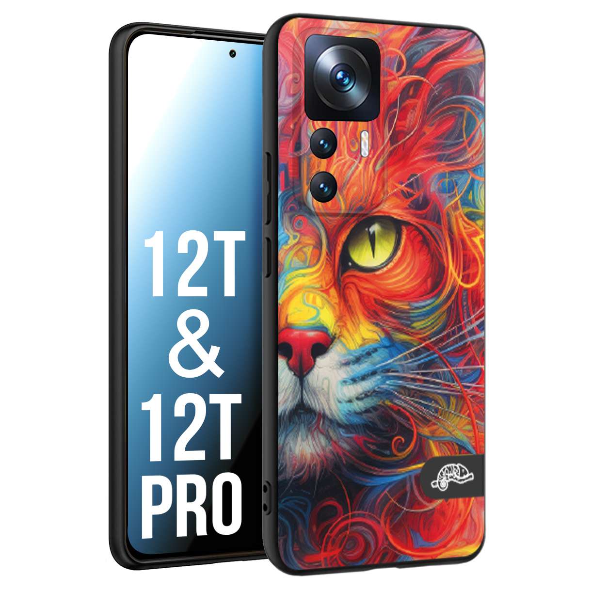 CUSTOMIZZA - Custodia cover nera morbida in tpu compatibile per Xiaomi 12T - 12T PRO animali color cat gatto viso colori vibranti disegnato schizzo