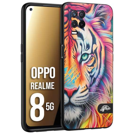 CUSTOMIZZA - Custodia cover nera morbida in tpu compatibile per Oppo Realme 8 5G animali color tigre tiger viso colori vibranti disegnato schizzo