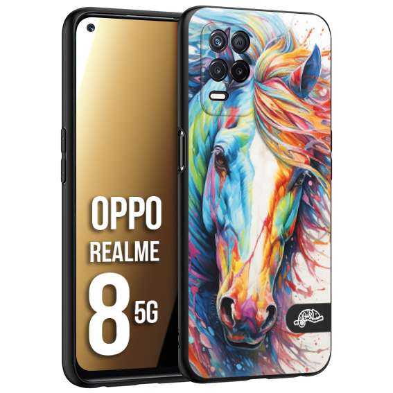 CUSTOMIZZA - Custodia cover nera morbida in tpu compatibile per Oppo Realme 8 5G animali color cavallo horse viso colori vibranti disegnato schizzo