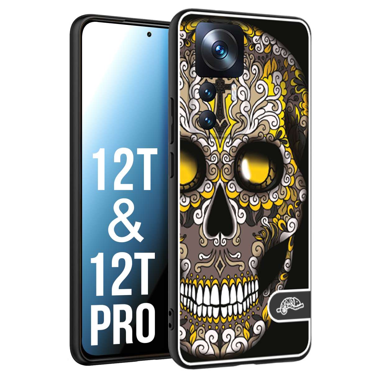 CUSTOMIZZA - Custodia cover nera morbida in tpu compatibile per Xiaomi 12T - 12T PRO teschio messicano Mexican skull nero giallo