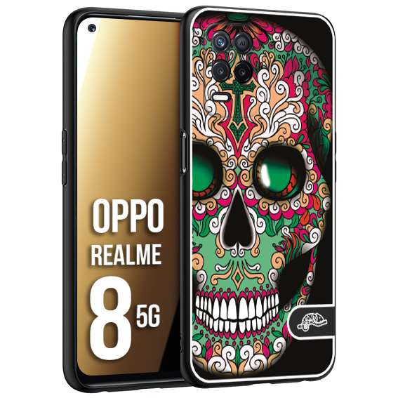 CUSTOMIZZA - Custodia cover nera morbida in tpu compatibile per Oppo Realme 8 5G teschio messicano Mexican skull verde fucsia