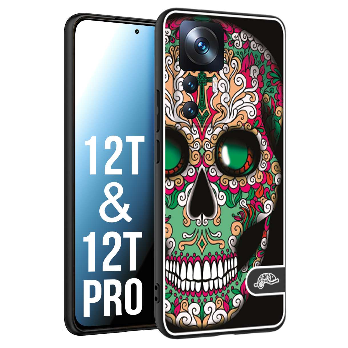 CUSTOMIZZA - Custodia cover nera morbida in tpu compatibile per Xiaomi 12T - 12T PRO teschio messicano Mexican skull verde fucsia