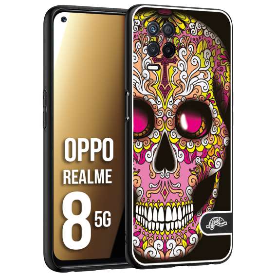 CUSTOMIZZA - Custodia cover nera morbida in tpu compatibile per Oppo Realme 8 5G teschio messicano Mexican skull rosa gialla