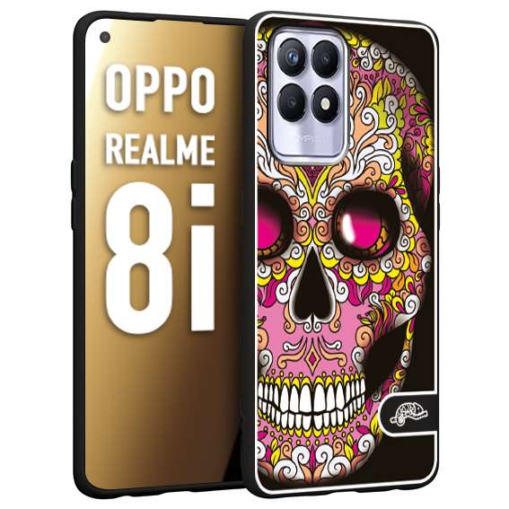 CUSTOMIZZA - Custodia cover nera morbida in tpu compatibile per Oppo Realme 8i teschio messicano Mexican skull rosa gialla