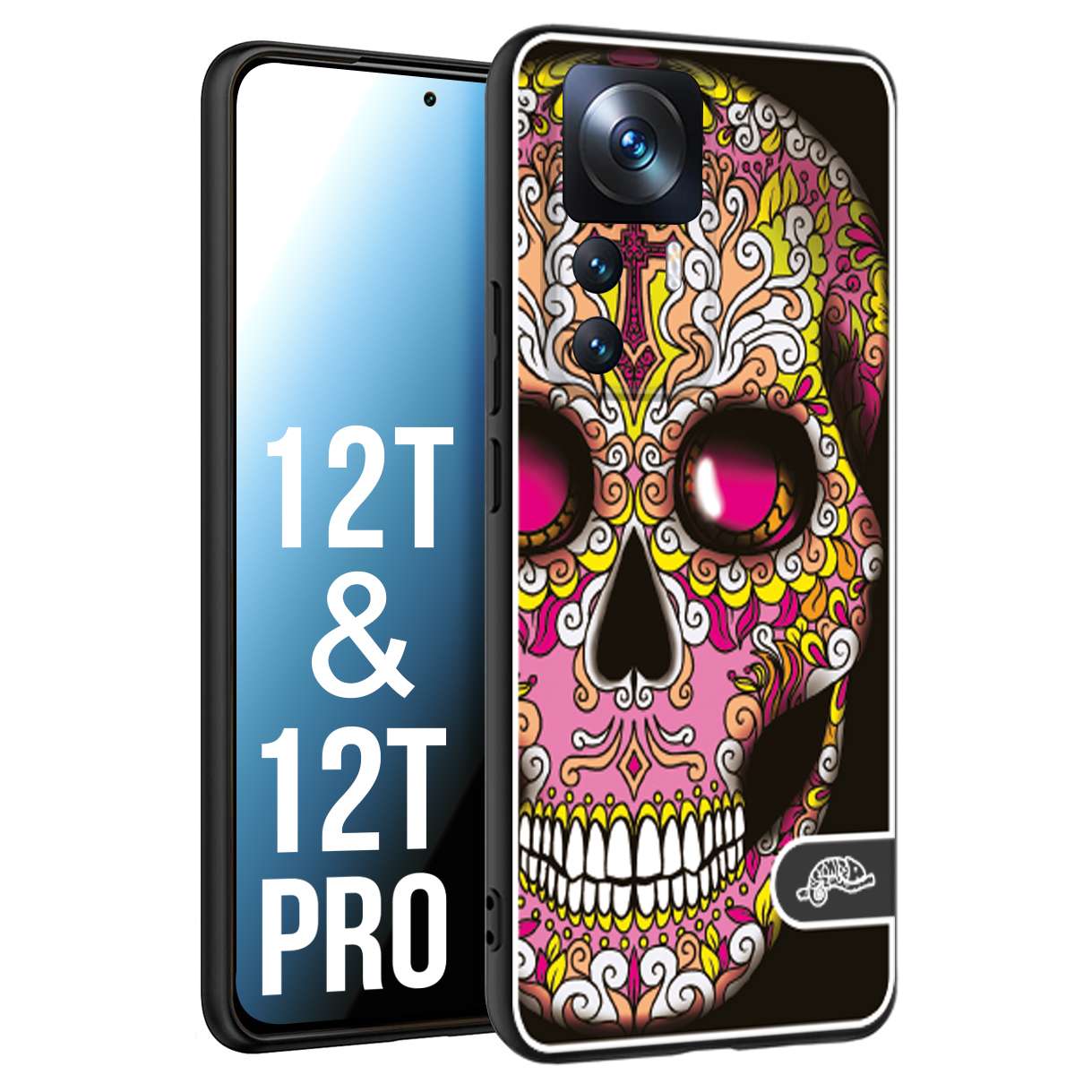 CUSTOMIZZA - Custodia cover nera morbida in tpu compatibile per Xiaomi 12T - 12T PRO teschio messicano Mexican skull rosa gialla