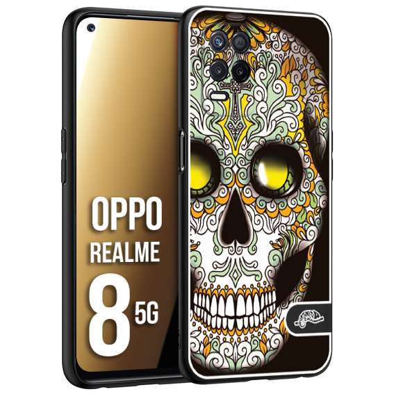 CUSTOMIZZA - Custodia cover nera morbida in tpu compatibile per Oppo Realme 8 5G teschio messicano Mexican skull bianco verde giallo