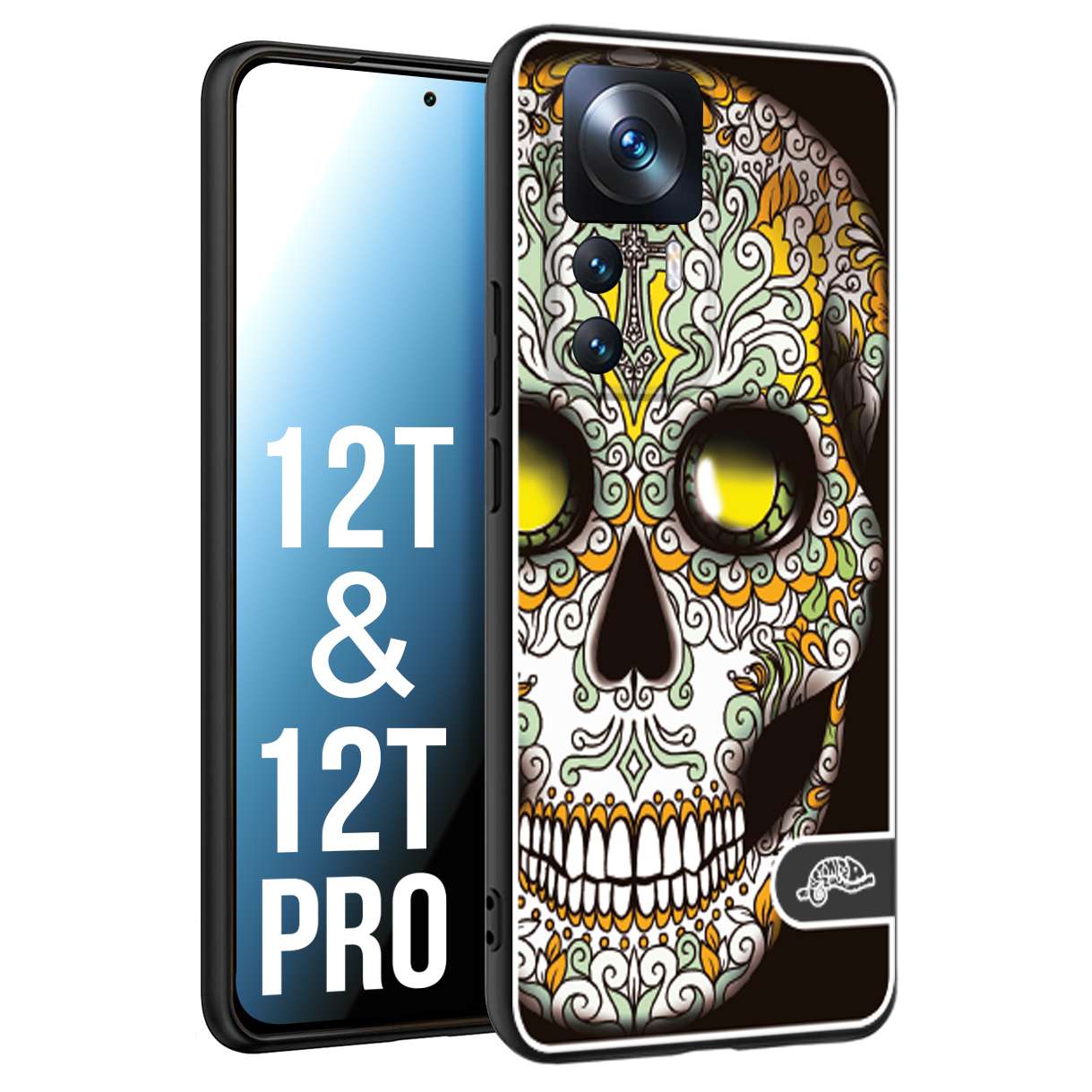 CUSTOMIZZA - Custodia cover nera morbida in tpu compatibile per Xiaomi 12T - 12T PRO teschio messicano Mexican skull bianco verde giallo
