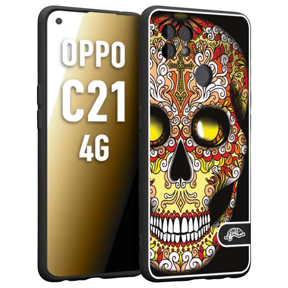 CUSTOMIZZA - Custodia cover nera morbida in tpu compatibile per Oppo Realme C21 4G teschio messicano Mexican skull giallo rosso arancio