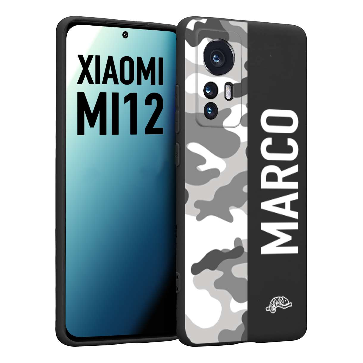 CUSTOMIZZA - Custodia cover nera morbida in tpu compatibile per Xiaomi 12 5G camouflage mimetico militare personalizzata nome bianco