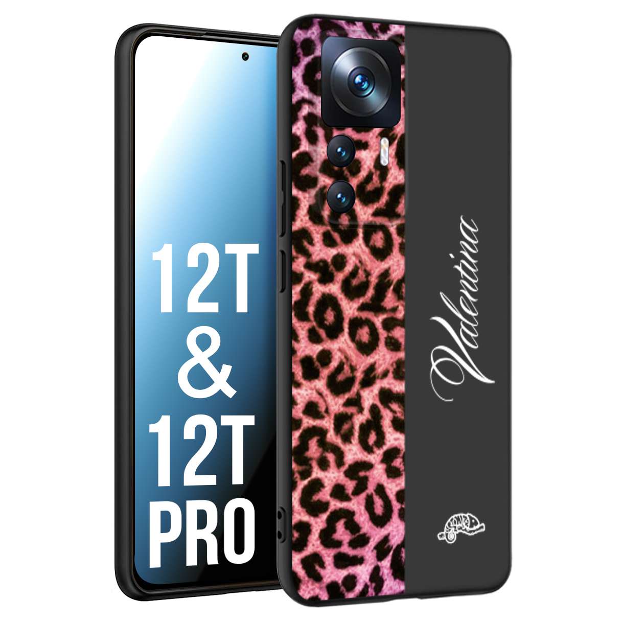 CUSTOMIZZA - Custodia cover nera morbida in tpu compatibile per Xiaomi 12T - 12T PRO leopardato rosa fucsia personalizzata nome iniziali