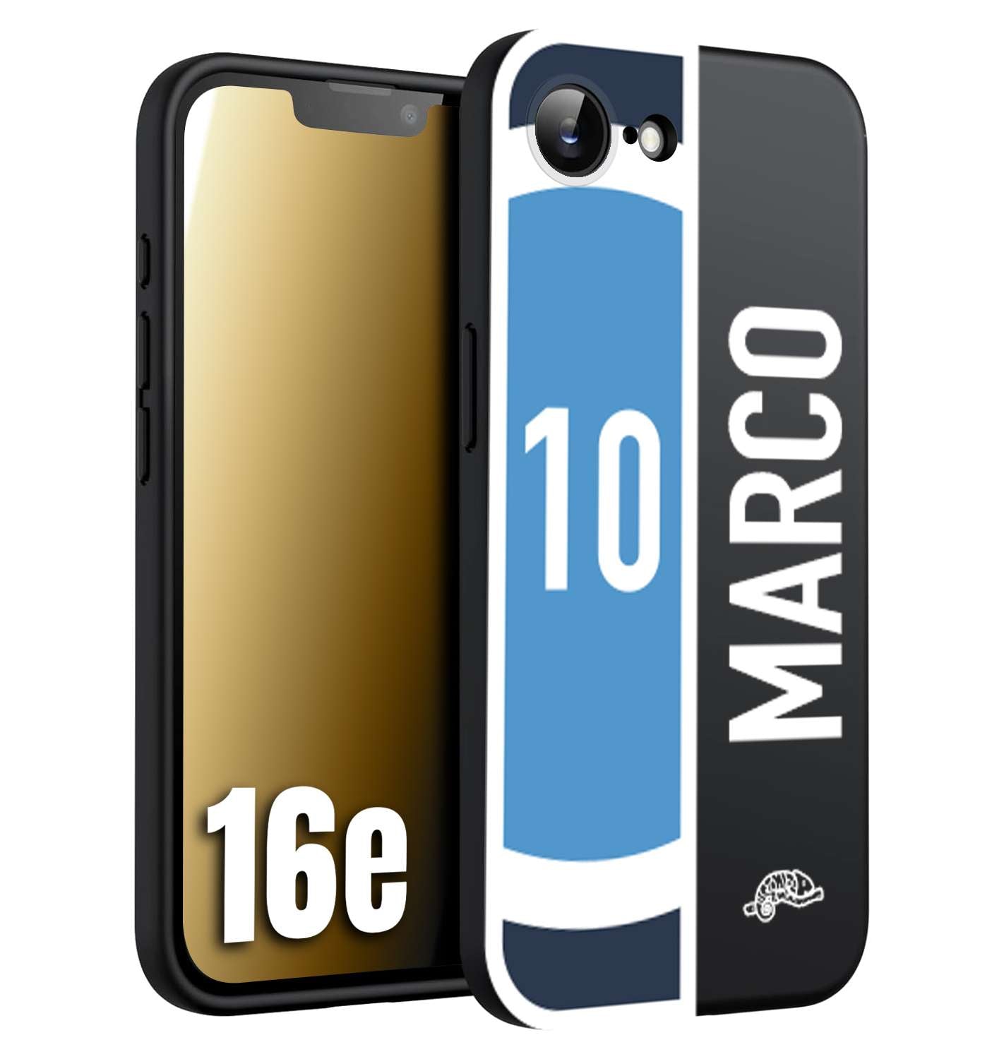 CUSTOMIZZA - Custodia cover nera morbida in tpu compatibile per iPhone 16E personalizzata calcio football nome e numero calciatori biancoazzurri bianco celesti