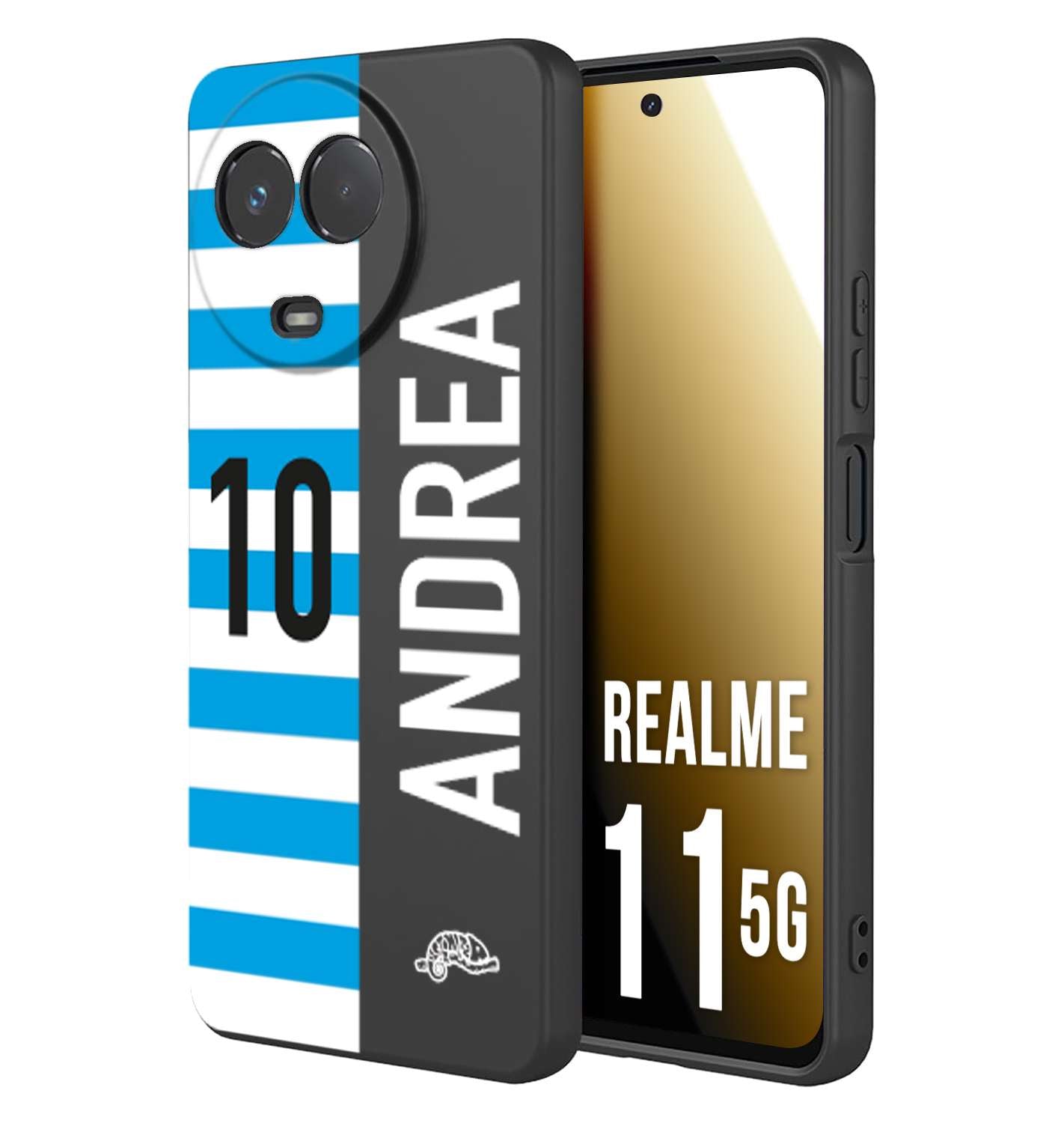 CUSTOMIZZA - Custodia cover nera morbida in tpu compatibile per Oppo Realme 11 5G personalizzata calcio football nome e numero calciatori biancazzurri